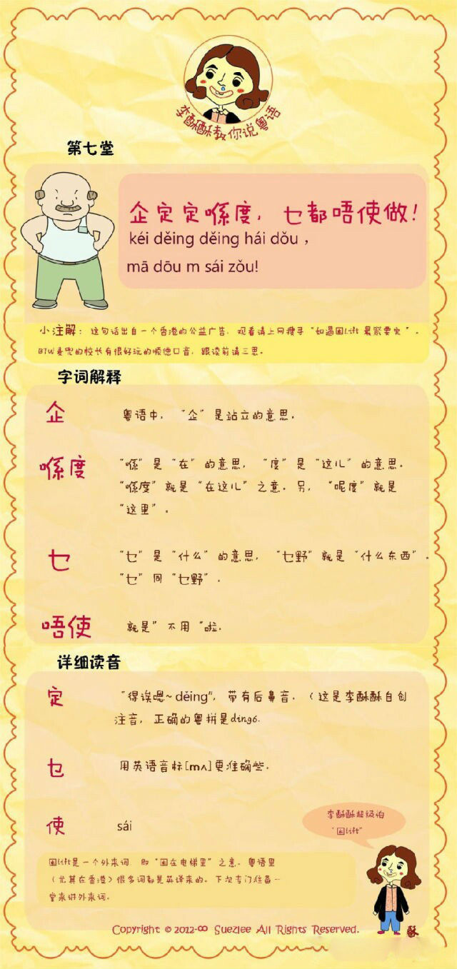 企定定喺度,乜都唔使做!(在这儿站好,什么都不用做!)