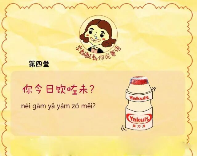 麦兜:老板,唔该有冇鱼蛋粗啊?(老板,请问有没有鱼蛋粗面啊?)