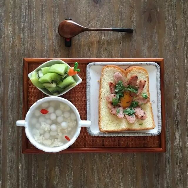 圆子又叫元宵,酒酿又作醪糟。这是一道源起长三角地区的汉族小吃。以果料为佐料,与滚包糯米粉的小圆子及酒酿同煮而成。酒酿味浓甜润,圆子较糯,果料甜香。是冬日里健脾养胃的温补甜点。尝着软糯甜点,美哉美哉!~