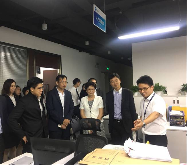在广电银通公司领导的陪同下,,详细了解香港大学生在广电银通实习的相关情况,并开展了座谈交流。