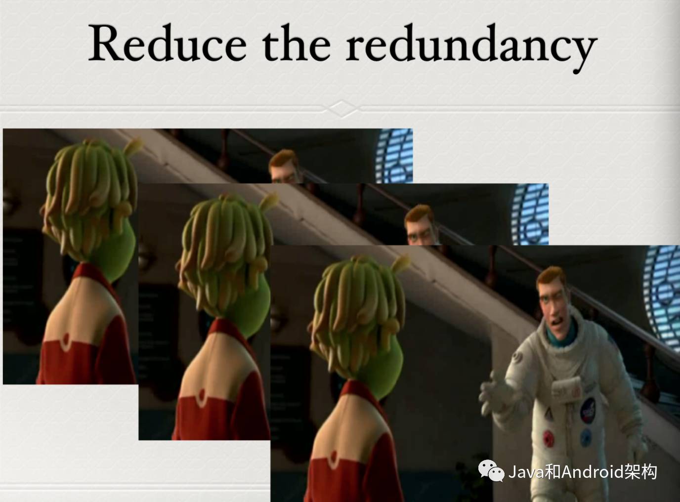 就这么呆坐了整整30s。那么对于这种“静态的场景”,视频压缩算法会只取这三十秒的前几帧作为基准帧图片,对其余的29s的帧,采取只保存“不同的部分”的策略,这样就不用保存这些差不多相同的图片,这种做法叫“去冗余”。大大减少了视频的体积。