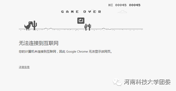 每当公司停网是不是各种无聊与寂寞?你的同事低头把玩他的I6,这时你默默地打开最新版的Chrome,优雅地按下你的空格键,安静地和萌萌的小霸王龙一起奔跑。没错,我们谷歌粉就是这么的粗暴任性。(何足道提到小霸王龙还能自由飞翔,跳起来后,迅速切换到另外一个网页,再切回,小家伙就飞起来了。亲测能飞!)