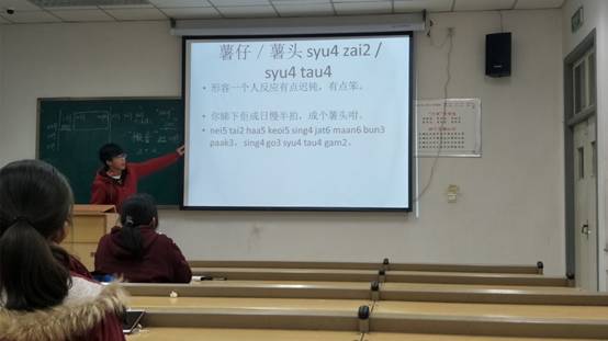当晚七点整,华中科技大学粤语社社长曹家浚宣布教学活动开始,伴随着华科粤语社各成员的掌声响起,一系列精彩的课程随之展开。蔡沅沛同学、,分别为我们讲解了粤语发音、粤语潮句以及进行了粤语歌曲教学。