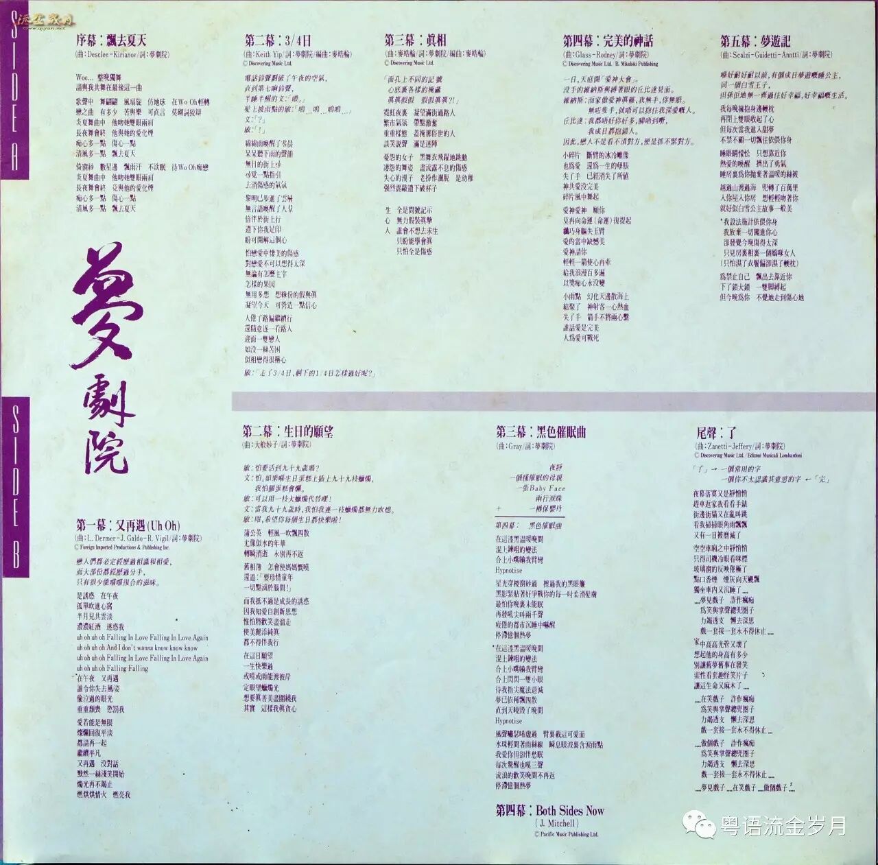 老实说,梦剧院第一张大碟的封面照实在有点不堪入目 - 两个浓妆艳抹的女孩,穿着有点过时的服装,摆着奇怪的姿势 (背后还有烟飘出来 !) 。而首只派上电台的歌曲 <飘去夏天> 则是改自不知名的跳舞音乐,故并没有使我特别注意。直到听过一鸣惊人的 <四份三日> 后,我才认真去留意她们,亦买了她们的黑胶唱片。仔细去听《梦剧院》,虽然大部份的歌曲都是由跳舞音乐改编,但配上她们的歌词和二部合唱后,却透出一股清新可人的感觉。还记得很有少女心境味道的 <完美的神话> 里面这几句: