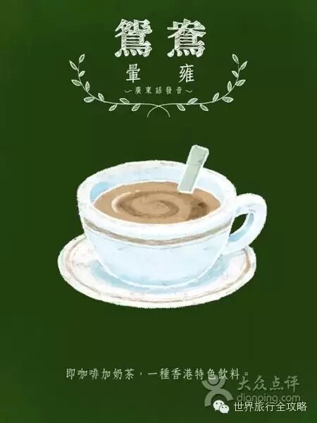 咖啡加奶茶制成的“鸳鸯”,乃香港兰芳园始创,济宁的植氏广州人家也不敢示弱呢。中医讲究五行均衡,冷热调和——咖啡燥热而奶茶寒削,所以七成港式奶茶与三成咖啡便是绝配,味道上佳之余还能平衡身心。