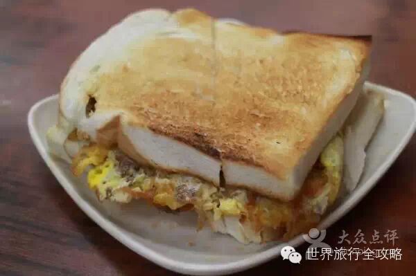 鸡蛋三明治并不稀奇,但港友记茶餐厅的镇店之宝「蛋牛治」却能让你在这普通的食材组合面前垂涎三尺:新鲜牛肉切碎后混入蛋液,而且全部都是即点即制,送上餐桌时还 是热乎乎的。牛肉鲜嫩、滑蛋鲜香,细看还有少许蛋浆从里面流出(可以要求烘底,不过就少了些视觉效果了),这道街坊美味性价比极高,实在不容错过。