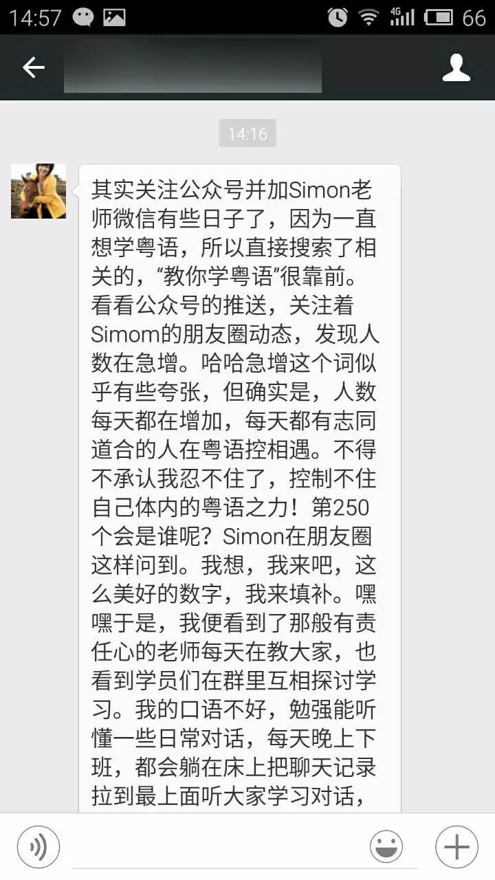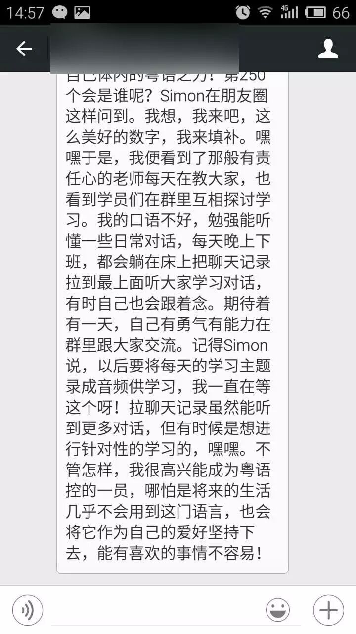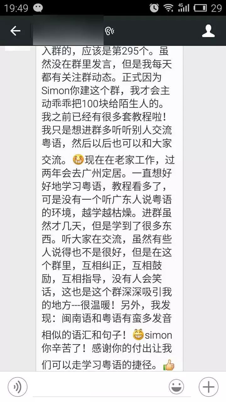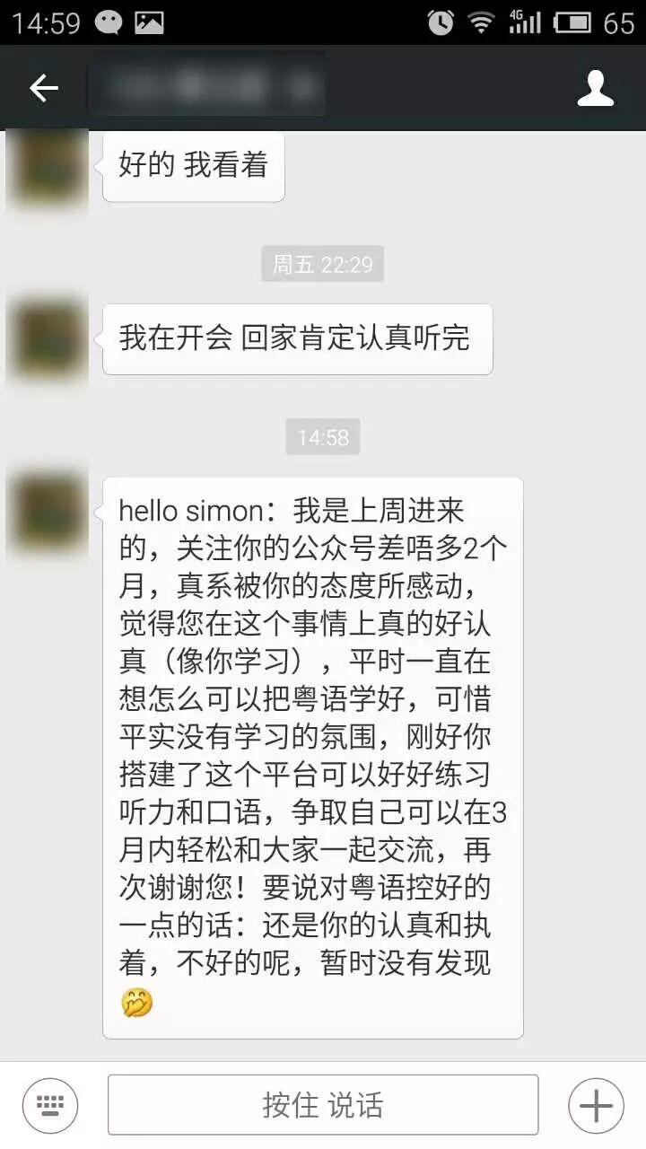 10月份刚刚过去,Simon建立粤语控这个付费群有一个多月了,今天来做一个总结,准备问问学员对粤语控的评价。于是收到了这样的回复。