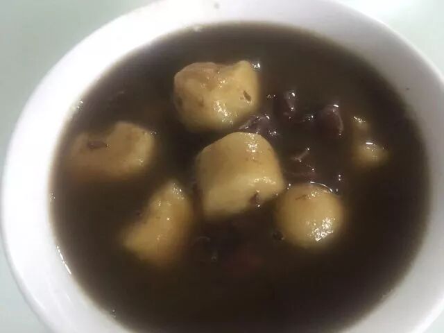 一、将糯米粉用热水调和,搓成圆丸备用;