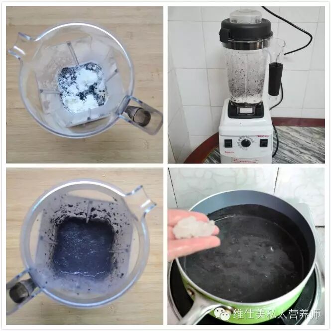 杂粮糊材料:炒熟黑芝麻40克;黑芝麻、紫米、薏米杂粮粉40克;熟糯米粉30克;热水约350克;冰糖约30克