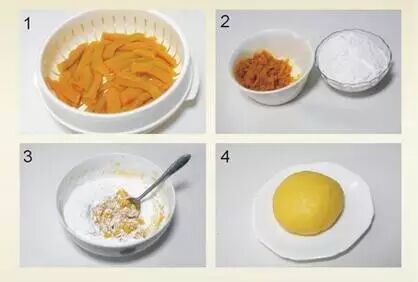 1、南瓜切片放入微波炉蒸笼中高火10分钟蒸熟。