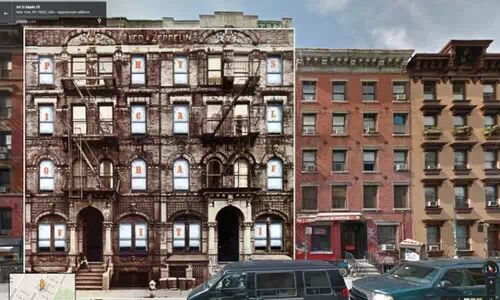 英国摇滚乐队Led Zeppelin(齐柏林飞艇)乐队在1975年发行的专辑《Physical Graffiti》封面,拍摄地位于纽约曼哈顿的96 St. Mark s Place。