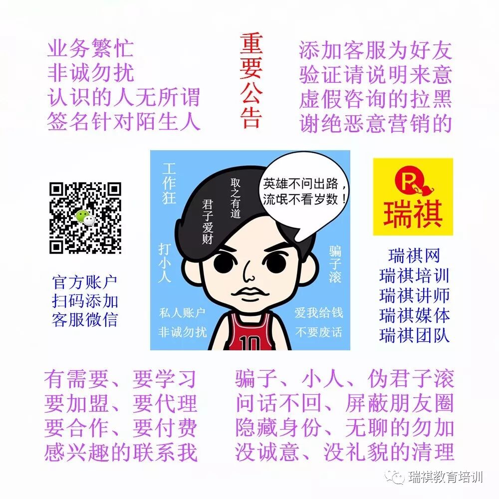 “瑞祺培训、瑞祺讲师团、瑞祺俱乐部” 已培养和历届毕业的学员分布在全国各个行业,我们除了教授谋生的技能培训,还提供就业推荐、创业辅导等增值服务,我们和很多企业、商家、教育机构有建立合作关系。
