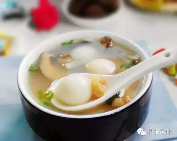 咸汤圆则可以放一些蔬菜菌藻海产品,如香菇、菠菜、虾米等,尽量不要放太多油、盐及其它调味品。