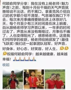 我当时嘀咕了一下:真的假的?不用钱?还有这好事?后来才知道,我一个学生无意中向记者提起我和“声音美容”,电视台觉得很有意思就想给我做个采访。南方卫视的采访播出后,名气就又上升了!找我学习的人就更多了。
