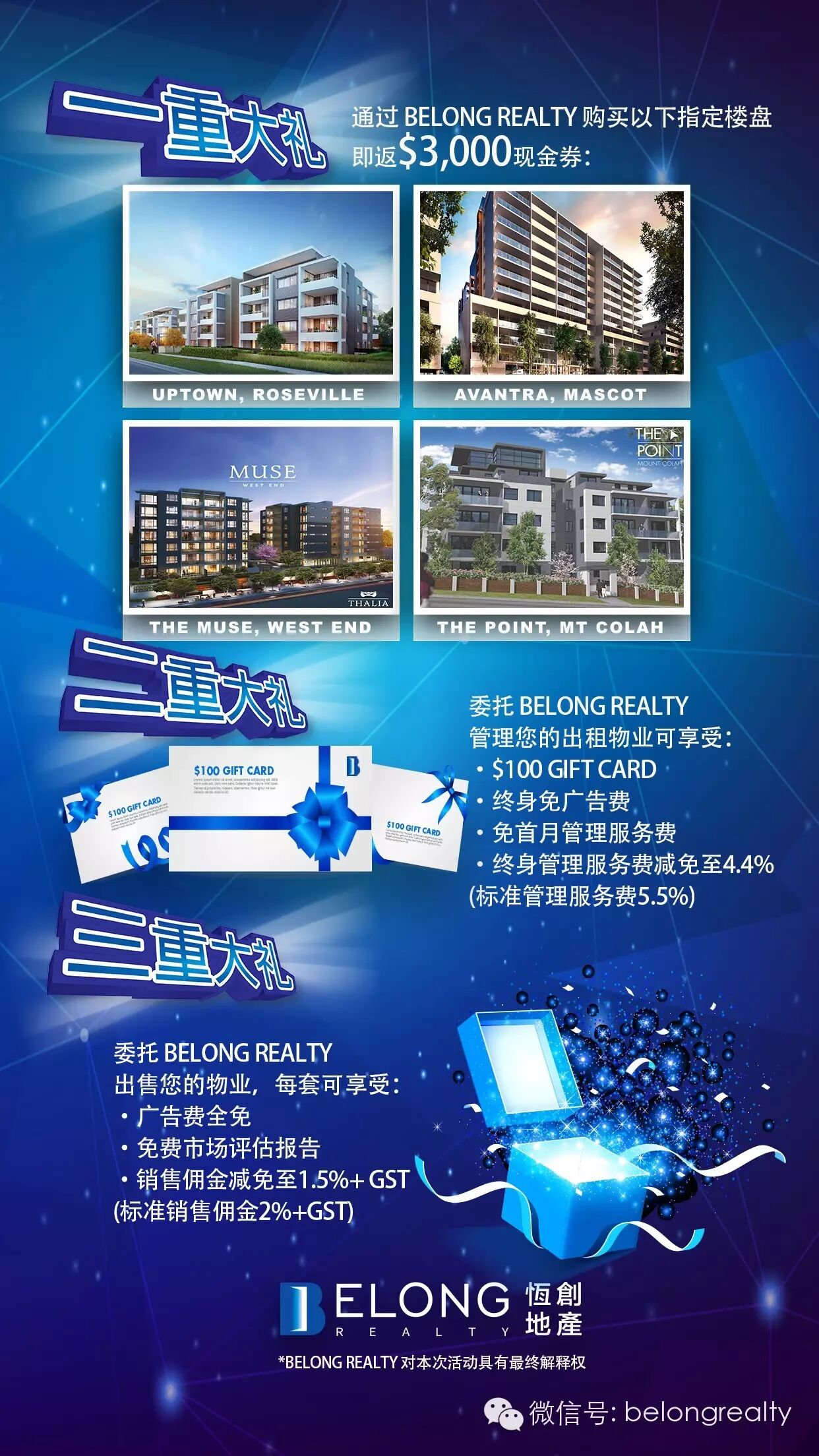 BELONG恒创地产为回馈广大客户及粉丝,凭此文章,即可获得以下盛大优惠及贴心福利: