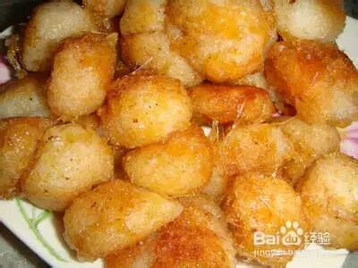 “穿衣”汤圆:不要被这个名字迷惑,其实道理很简单,就像做糖葫芦一样,前提是汤圆提前炸熟,将芝麻炒酥,超过内加入白糖,加热至熬成糖糊,加入芝麻、汤圆,滚粘均匀,即可出锅。