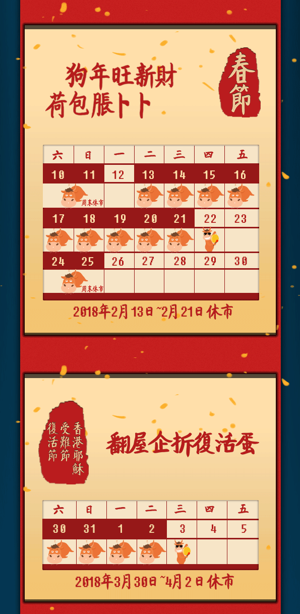 港股通2018年交易日历 · 粤语版