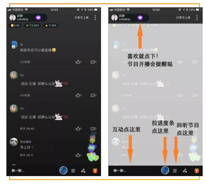 担心错过节目么?节目回听还是有的!重要按钮全在直播间底部!