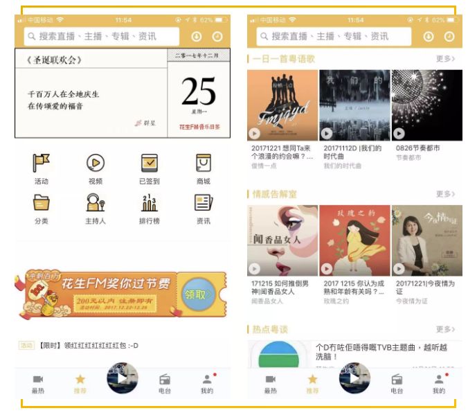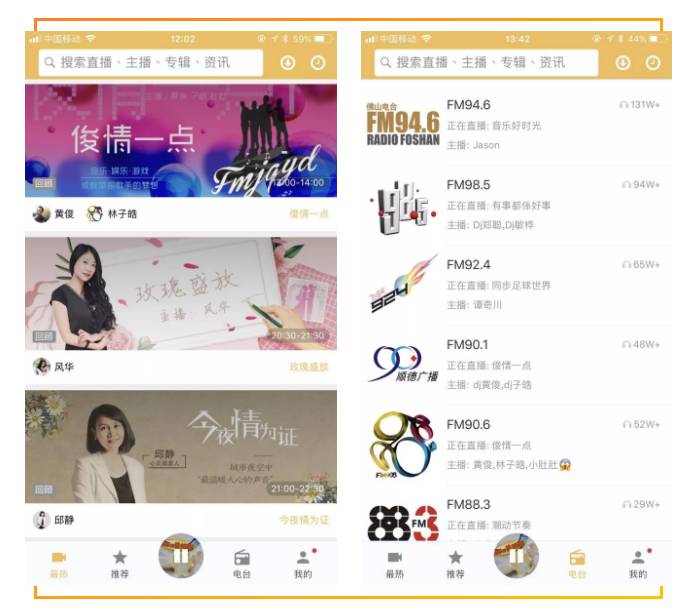 但是!花生FM全新版上线【最热】版块(左图),聚焦各电台频率至TOP节目!