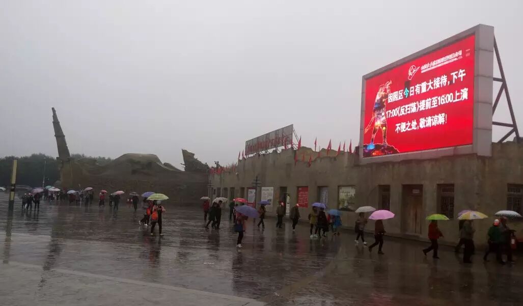 ▲雨中的人潮我要排好队早些进入景区观看演出 ![5801e45fb6cfd.jpg]()