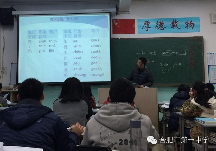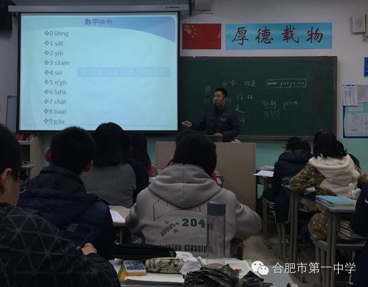2015年3月18日下午,由高一化学组李晋凯老师开设的《实用粤语同香港文化》校本课程在同学们的期待中正式开课。该门课程也是合肥一中开设的第一门方言类课程。
