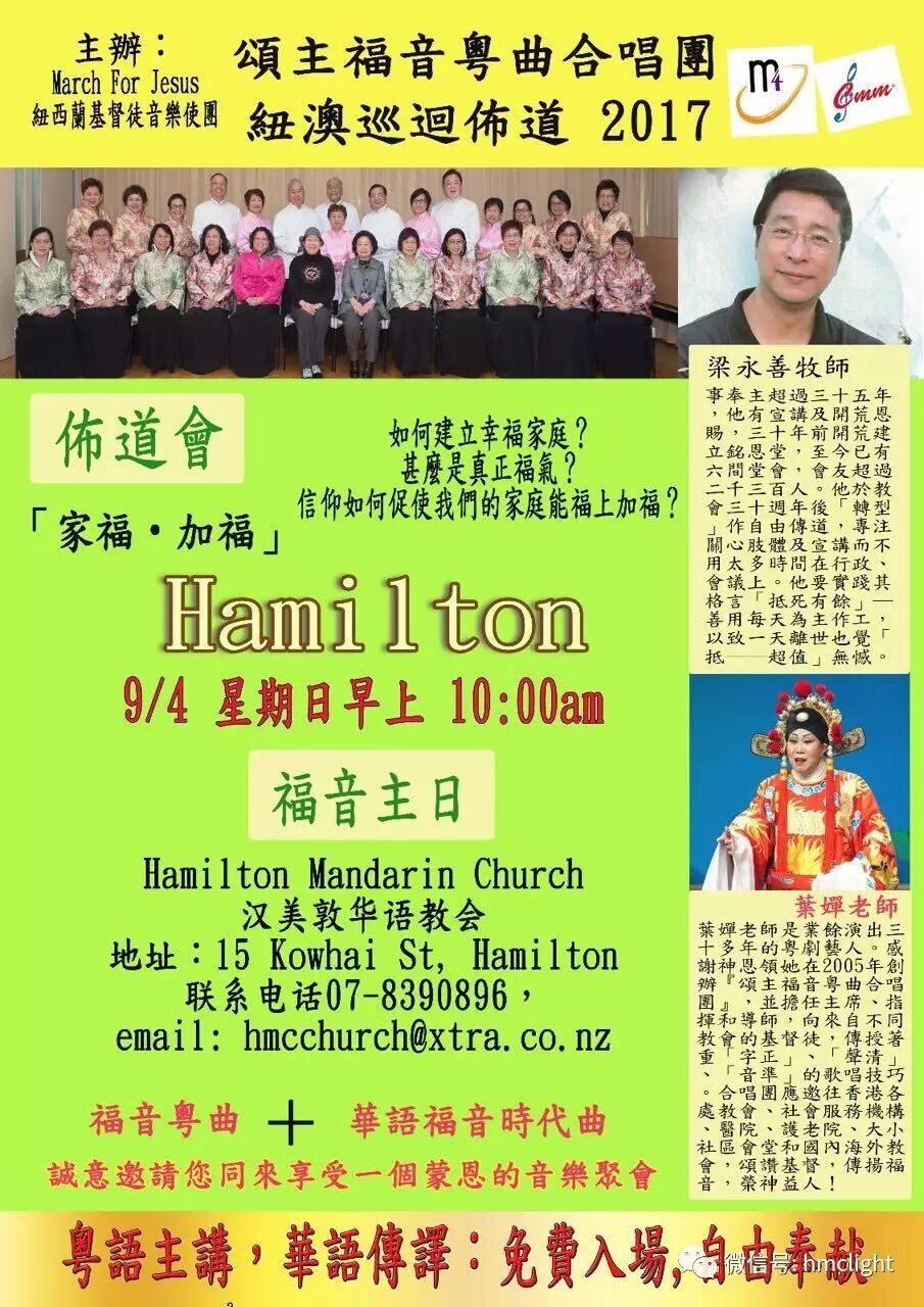 Hamilton华语教会特邀梁永善牧师前来分享, 他将以粤语传讲信息, 并翻成普通话,请大家把握机会邀请亲朋好友一同参加。