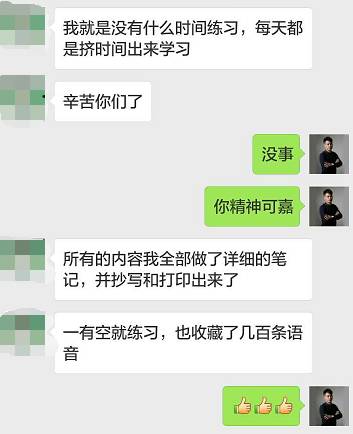 这个同学,尽管她很忙,但也能坚持学习,让我很震惊。以前她也不会说多少,现在都会说整句整段的交流了。