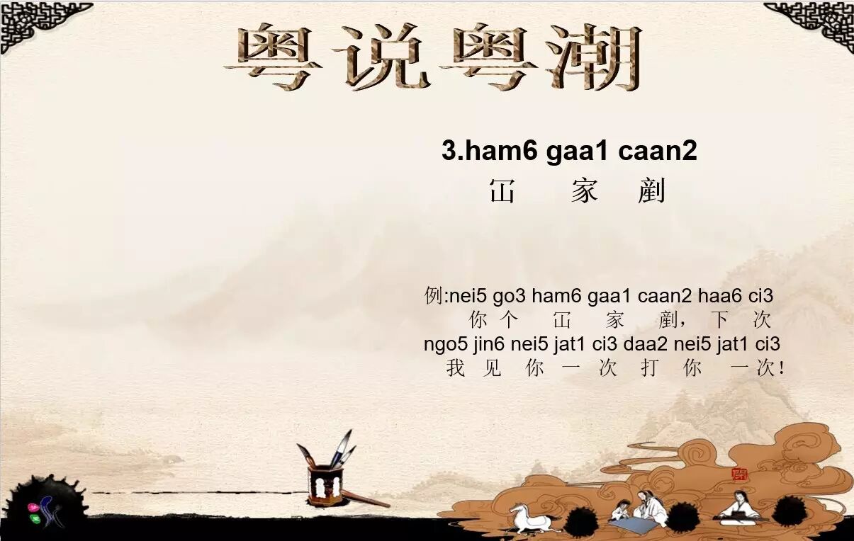 这次的粤说粤潮教给大家一些最地道、最能体现粤语魅力的词语—粗口(髒话),如扑街(puk1 gaai1),尿头(chat6 tou4),顶你个肺(ding2 nei2 go3 fai3),屎忽鬼(si2 fat1 gwai2)等几个词语,让你在骂战中能花样百出,十分实用。