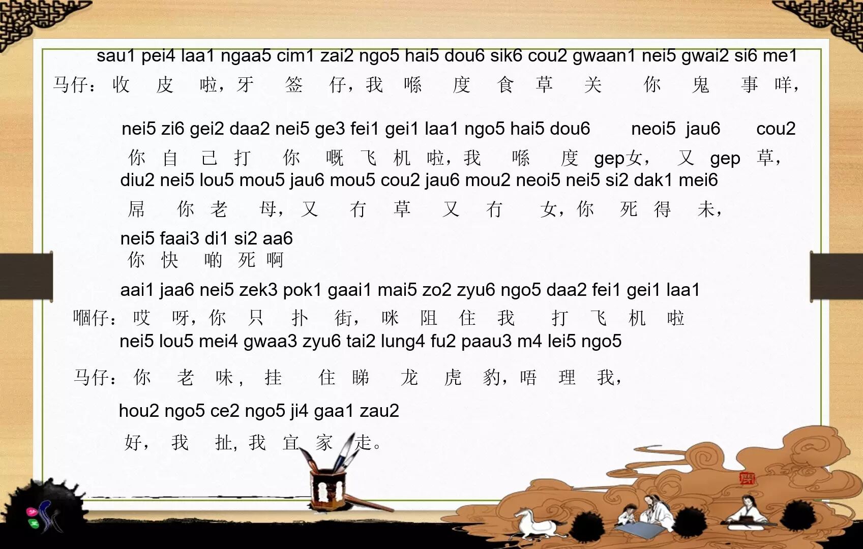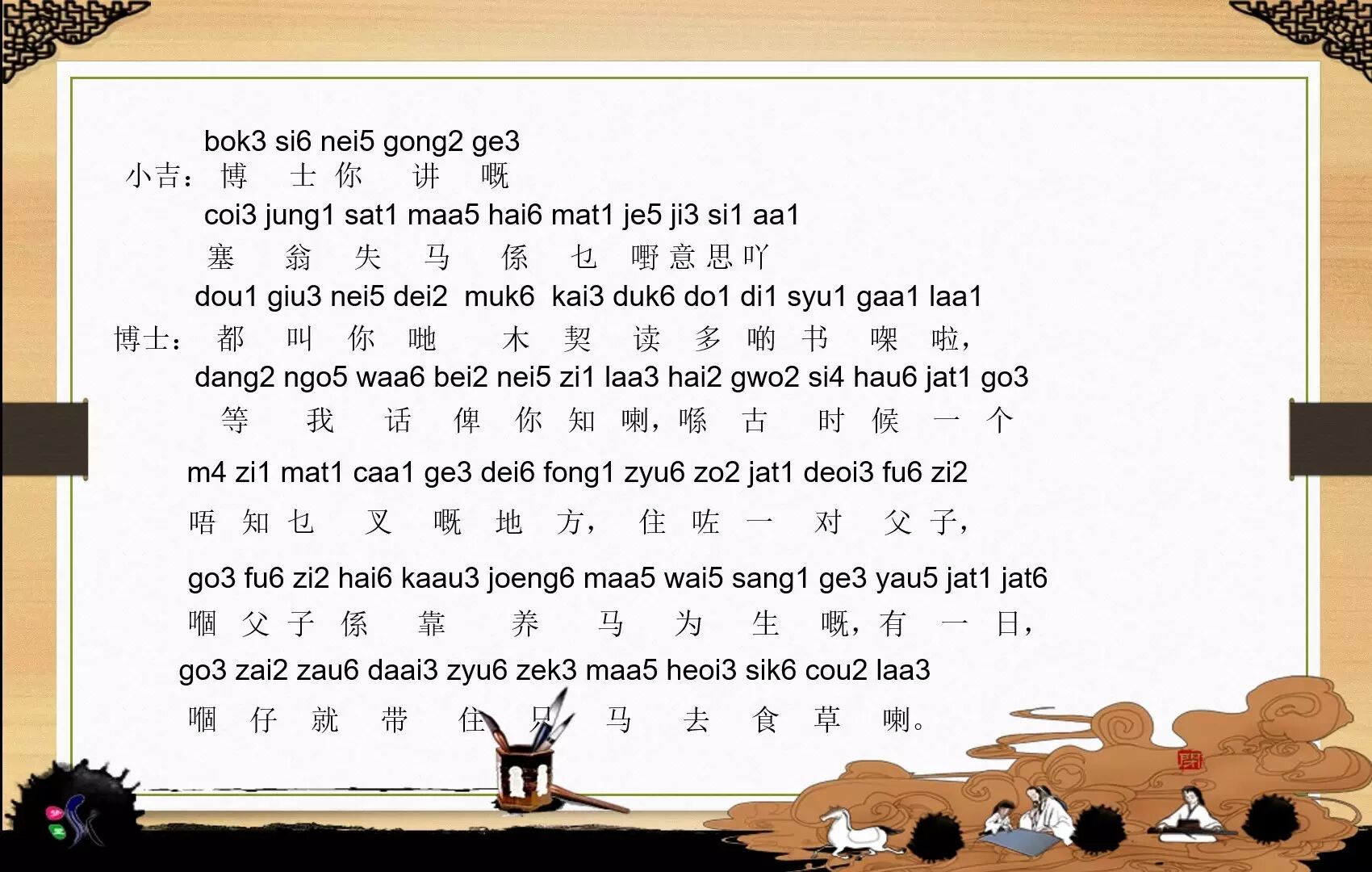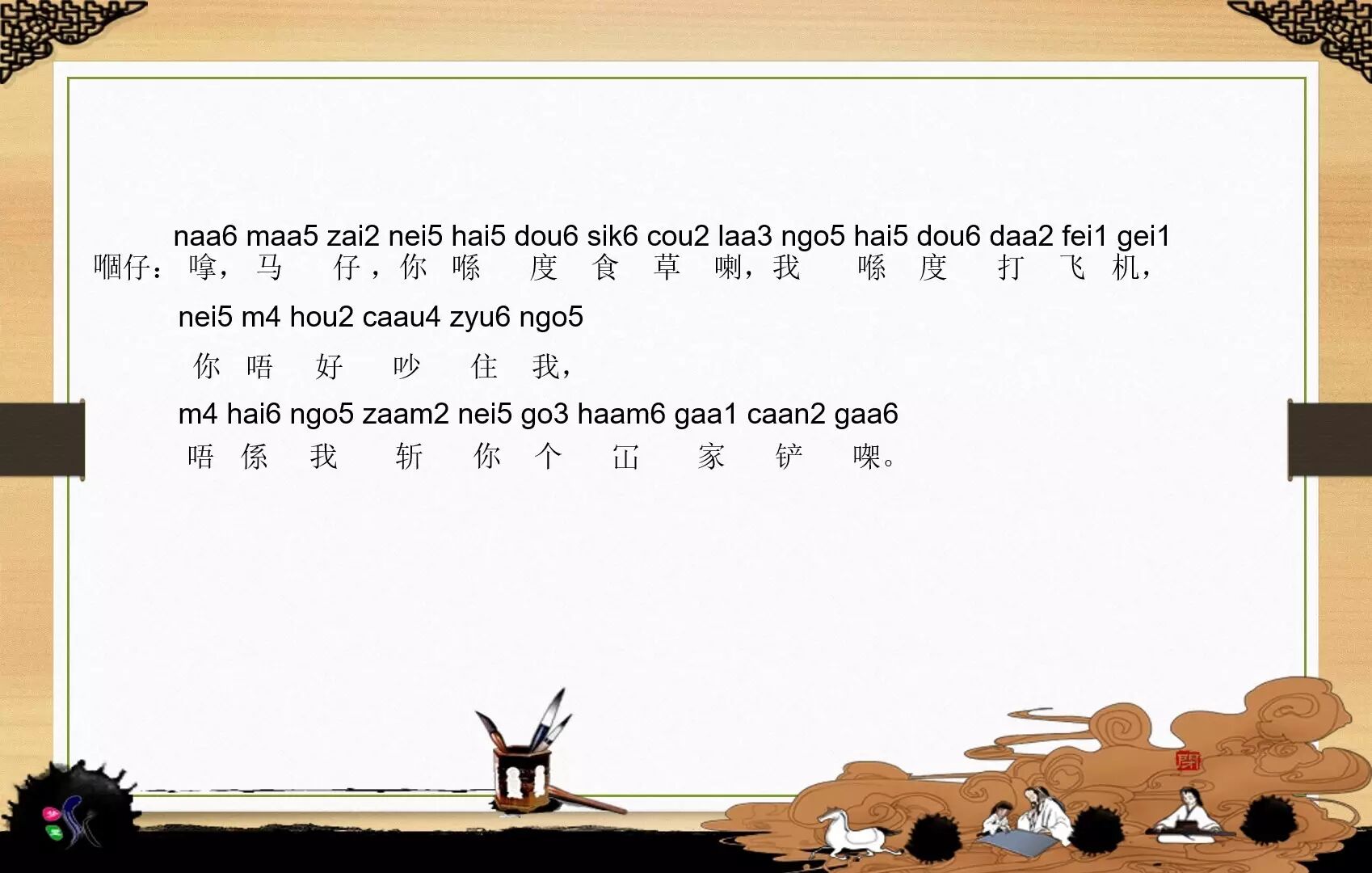 在学习地道粤语前,我们首先来认识一下音标,里面不只有一些常用词语和歇后语而且还有绕口令哦,有兴趣的小伙伴可以挑战一下哦!