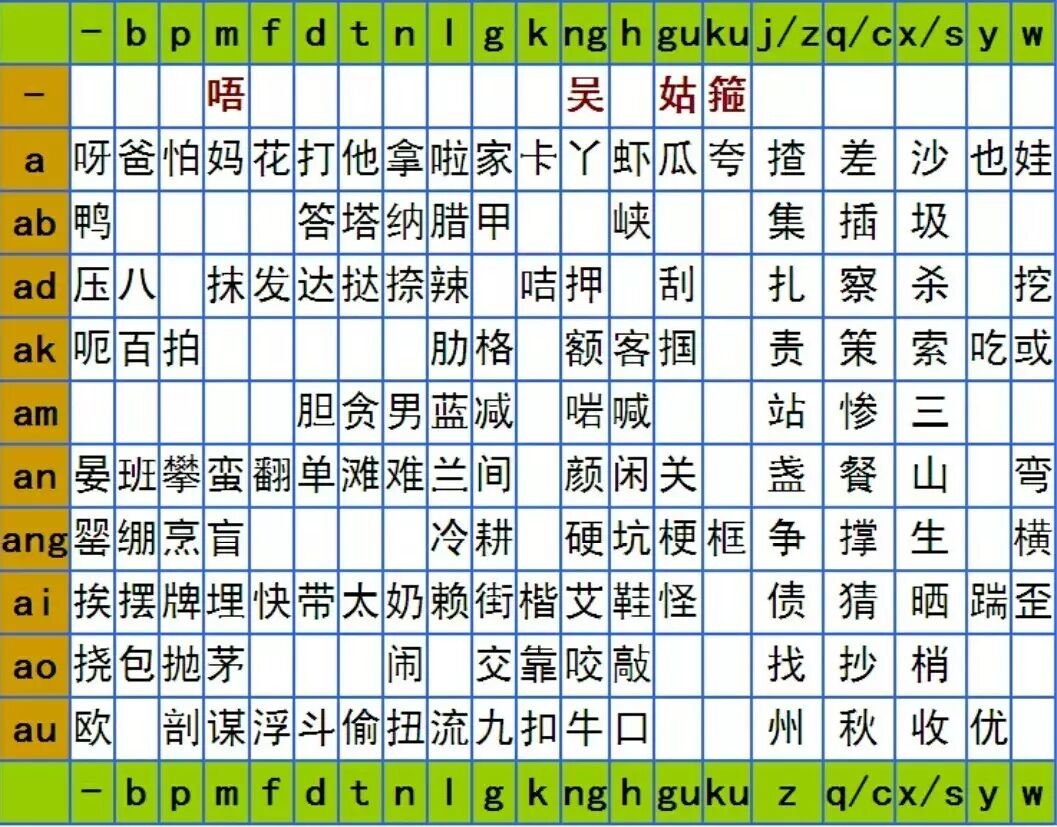 (注明,粤港音标ag=ak,aa表示长音,其他元音均如此)