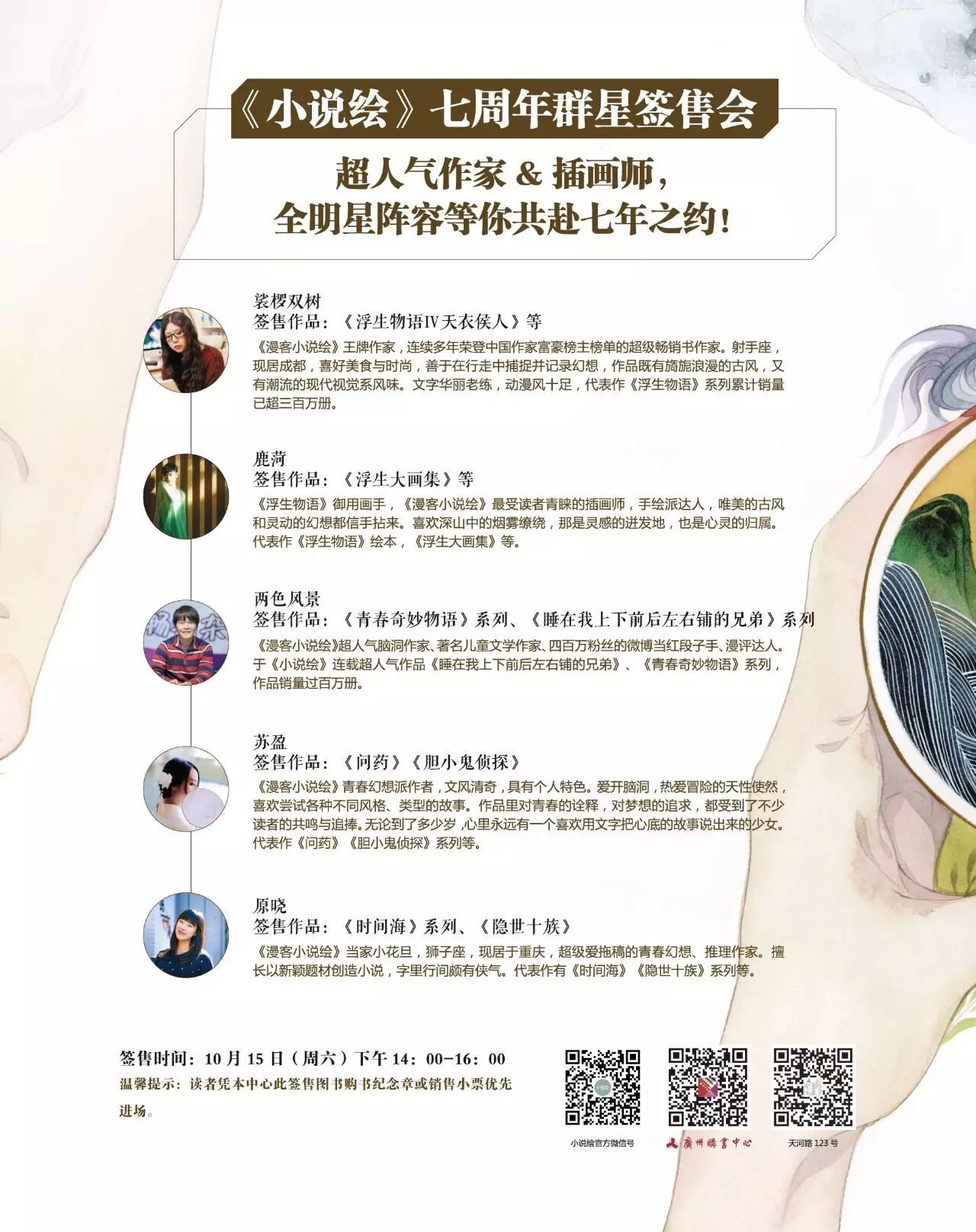 参加读者见面会的读者,请从广州购书中心一楼北门(一楼收银台、水果捞旁边)排队入场;
