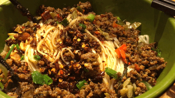 在四川,粉面中最具代表性的要数担担面。面条采用的是细面,入口筋道,根根分明不粘腻,口感十分爽滑。肉沫、酸菜、花生配上四川特有的辣酱混合而成的杂酱,点缀几片青油菜,麻辣鲜香又清新。