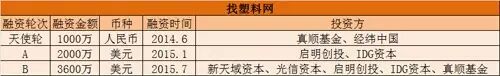 创立伊始,找塑料网便获得真顺基金和经纬中国天使轮投资;2015年1月,又完成2000万美元A轮融资;2015年7月,获得3600万美元B轮融资。