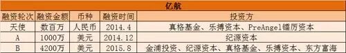 亿航是一家专注于无人机的科技公司,成立于2014年4月。其在2014年5月,发布了旗下首款无人机产品Ghost。Ghost无人机无需任何组装或者额外的遥控器,用智能手机APP控制即可,降低了用户使用门槛。在2014年12月获得1000万美元的A轮融资后,亿航顺利完成了Ghost的量产。2015年8月,亿航又获得了4200万美元的B轮融资。