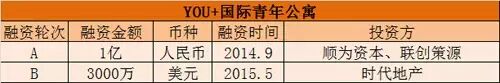 除了2014年9月,雷军的顺为资本参与投资的1亿元人民币A轮投资;YOU+还于2015年5月完成了时代地产投资的3000万美元B轮融资。