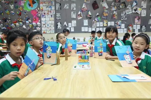 美艺特色课程包含动漫、创意绘画手工、国画和书法。在书法课上,学会笔划简单的书写和练习的方法;在国画课上,感受到水墨在宣纸上晕染开的效果;在动漫课上,学习了昆虫造型的细化与创作;在创意绘画手工课上发挥想象力,培养团结合作精神。这学期我们还与高院校教授、名家们一起在星学广场挥毫作画。