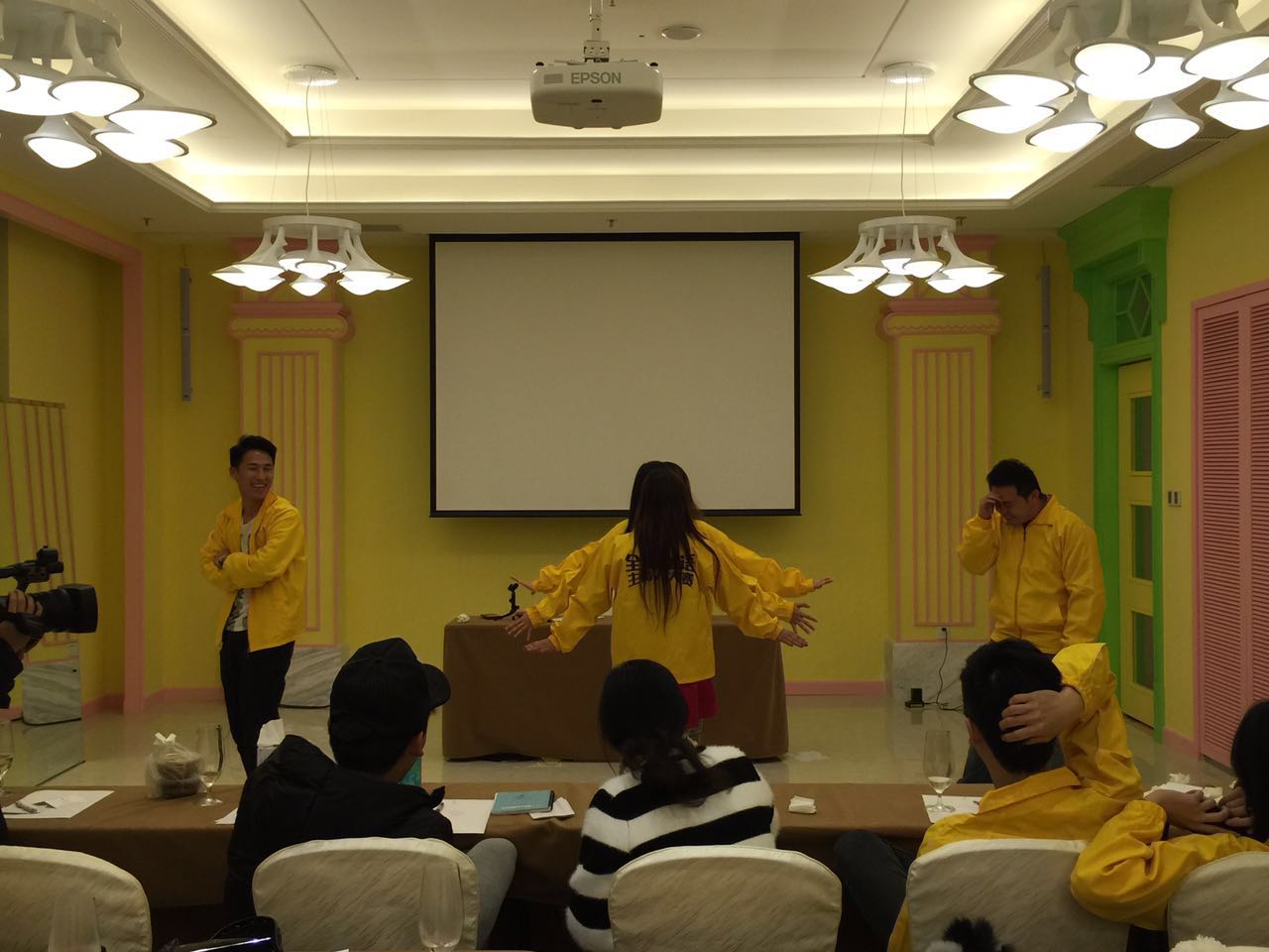选手培训全程拍摄,每一位选手都不敢怠慢,个个都打扮得美美的。不过一穿上整齐的队服,选手们立刻变成了“小黄人”。来,小黄人们排好队,我们出发啦!