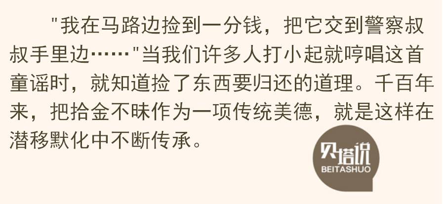 宝贝们,拾金不昧是我们中华民族的一种美德,是一个人高尚道德情操的体现。我们每个人都应从小养成这样的的好品德,这对于每一个人的成长都有很大的意义。
