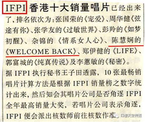 ● 1995年,影响力依旧的陈慧娴重返乐坛,并与同年并于同年推出复出后的首张专辑《Welcome back》,专辑发行后连续6周获得香港IFPI销量榜冠军,主打歌曲《我寂寞》获得十大中文金曲奖以及十大劲歌金曲奖。