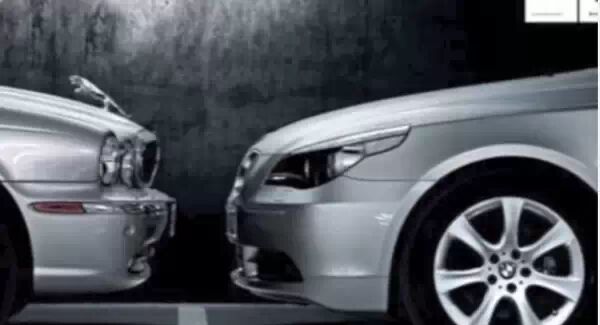 然后就开始咬捷豹了。下面这个还是宝马的广告,图中左边的捷豹的豹子标被吓反了。