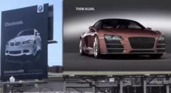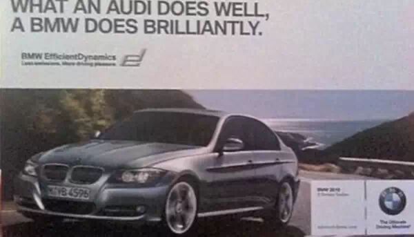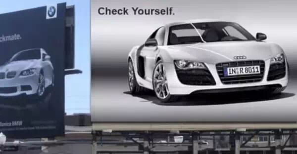 结果过了几天,宝马真的行动了,用更高性能的车型在奥迪的广告旁边挂上了这个广告牌。