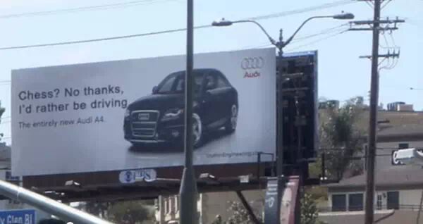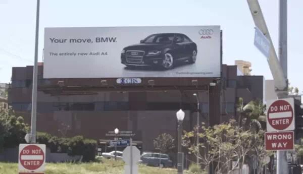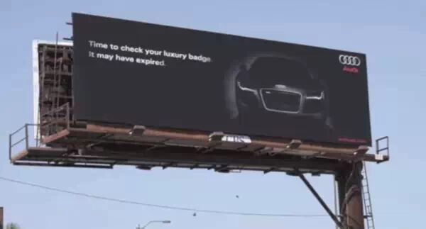 事情的起因是这样的,在加州,奥迪给新 A4 挂了这么一个广告牌子