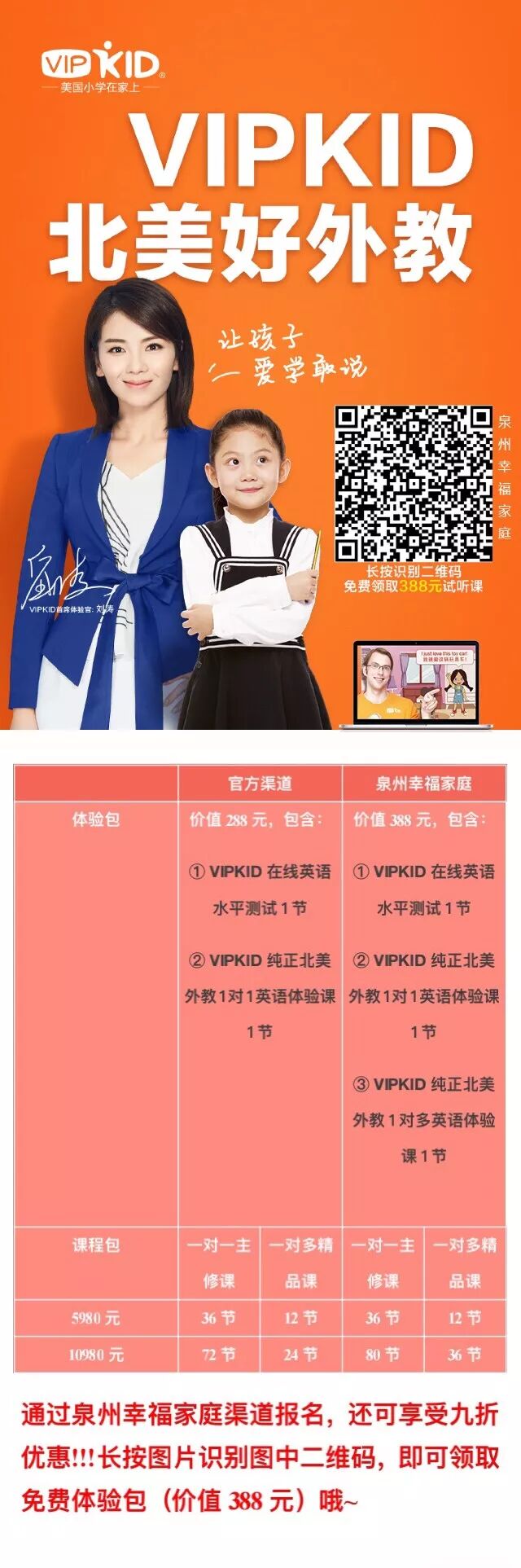 VIPKID英语是《爸爸去哪儿5》的合作品牌,专注于在线少儿英语教育,针对4-12的小朋友,提供北美外教一对一在线英语课程。VIPKID英语全部是北美外教,英语发音标准,熟悉北美文化,大部分有着优质的学历背景。外教们上课时都非常热情,肢体语言丰富,善于调动课堂气氛,孩子更爱学习。