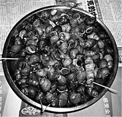 五香螺丝、蚕豆:泰兴河网密布,螺丝遍地皆有;蚕豆属于地产物,取之不尽,用之不竭,将老蚕豆焐出芽后,加上香料煮熟后便可食用。令人值得怀念的是卖主用竹筒盛给你螺丝后,总要递给你一根针棘,供你挑着吃。