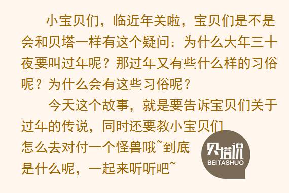 点击下方音频  ▼ ,听听年兽传说的故事吧!