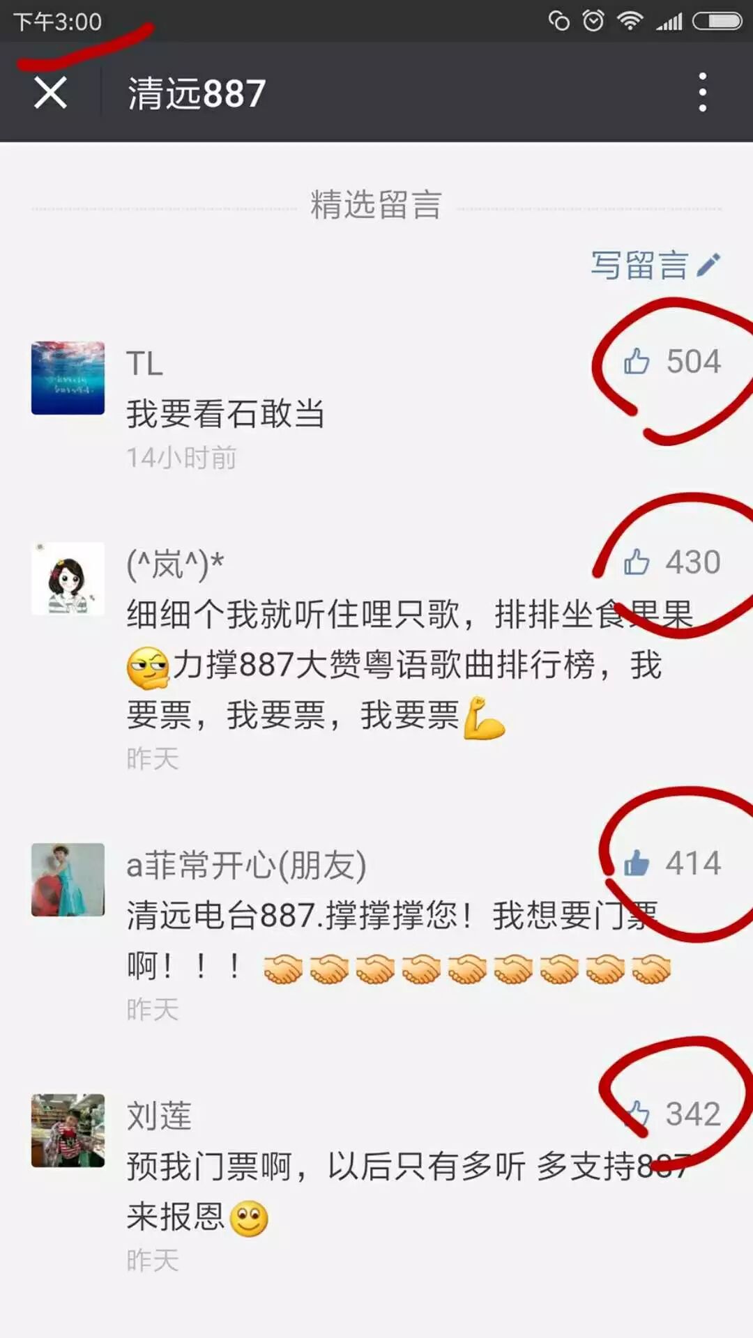 现公布昨天留言点赞前四位得主