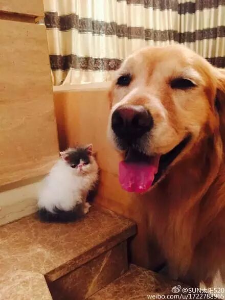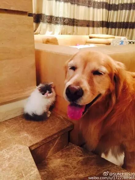 别问我为啥猫狗和谐,给你们看布丁回来的第一天!丫丫笑的那个欢啊!然后我以为她要吃了布丁。舔成落汤喵了……(@SUN太阳520)