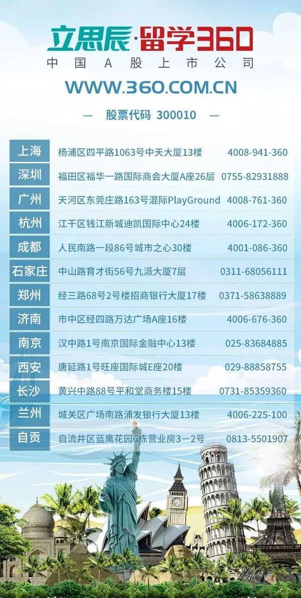 立思辰留学360,隶属于上海叁陆零教育投资有限公司,中国A股上市公司立思辰科技股份有限公司成员企业,代码:300010。立思辰科技股份有限公司(以下简称“立思辰”),创立于1999年1月8日。2009年10月,立思辰成为中国创业板首批上市企业之一,于深交所发行上市, 股票代码(SZ300010)。秉承“厚德载物、自强不息”的发展理念,立思辰把握历史机遇,持续创新。未来,留学360将配合立思辰,以“激发●成就亿万青少年”和“保卫数据安全护航国计民生”,为教育和安全集团的发展愿景,致力打造千亿市值领军企业。