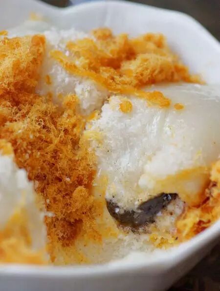 备齐所有材料,将汤圆放入一只干净的大碗;在汤圆的缝隙处撒满椰蓉;最后在上面撒上肉松,水开后放入蒸锅,大火蒸15分钟左右即可。