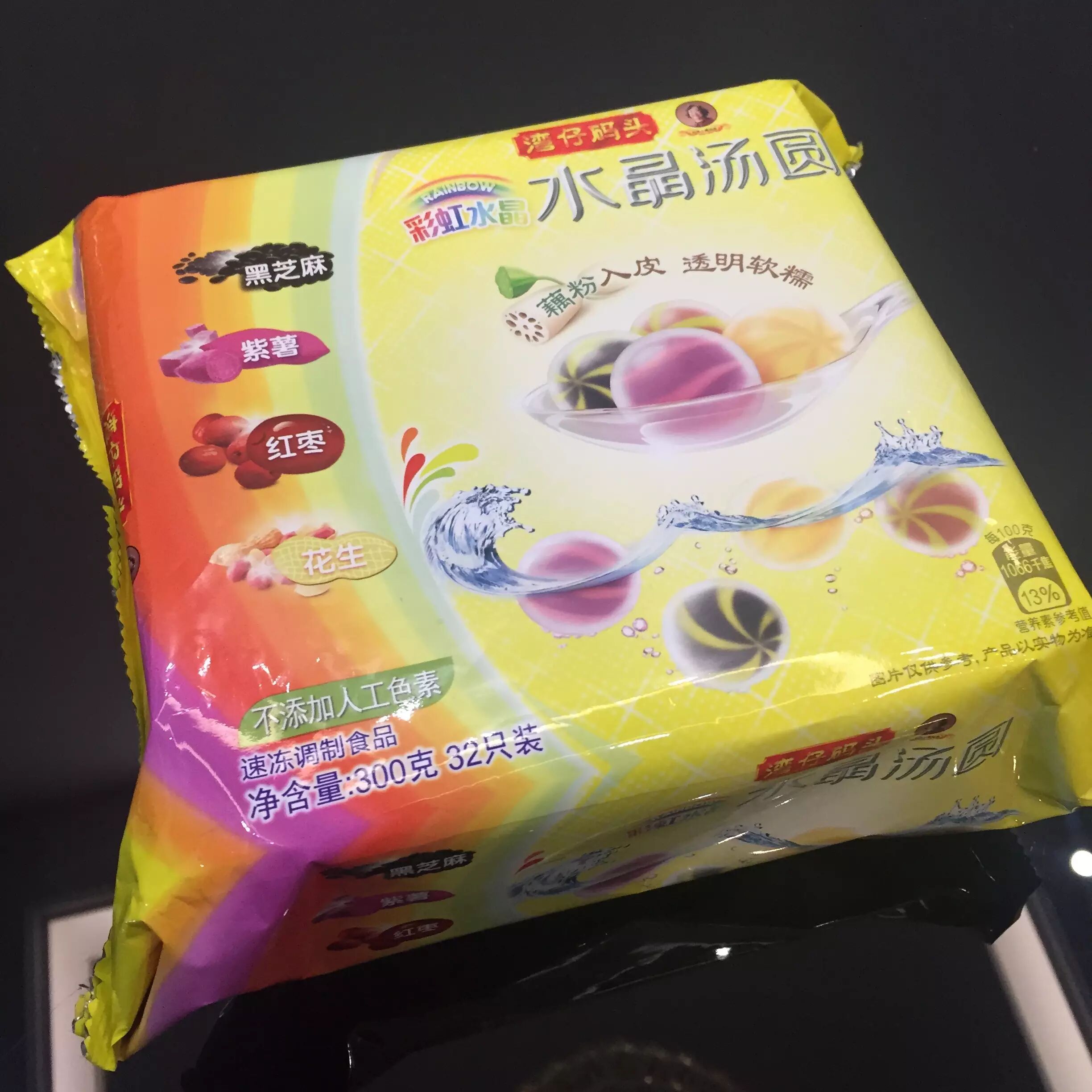 看包装上的汤圆照片就像小时候吃的西瓜泡泡糖一样,带有花纹的圆滚滚的小球。因为藕粉入皮,所以透明的表皮下面可以透出馅料不同的颜色,花纹都超级可爱。不知道实物是不是有这个效果,小淘姐好奇地买了一包。结果果然是买对了!煮出来的效果真的和效果图一样一样的,馅特别饱满,关键一个包装里有四种口味,口味多多换着吃,光看着这些可爱的造型,就一点都不会厌。